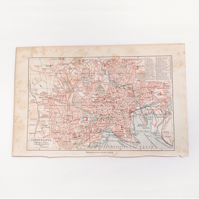 ノルウェー首都オスロ 1924年以前の旧称 クリスチャニアの地図 アンティークマップ 古地図 ヴィンテージペーパー マイヤー百科事典 01957-3