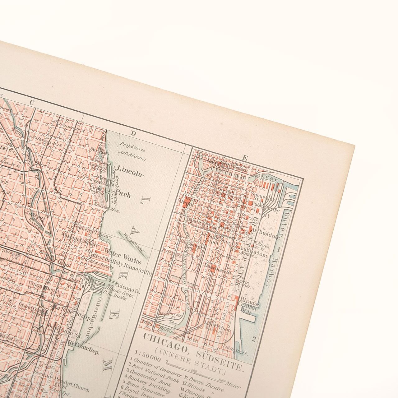アメリカ・シカゴ アンティークマップ 古地図 ヴィンテージペーパー 図版 マイヤー百科事典 01957-121