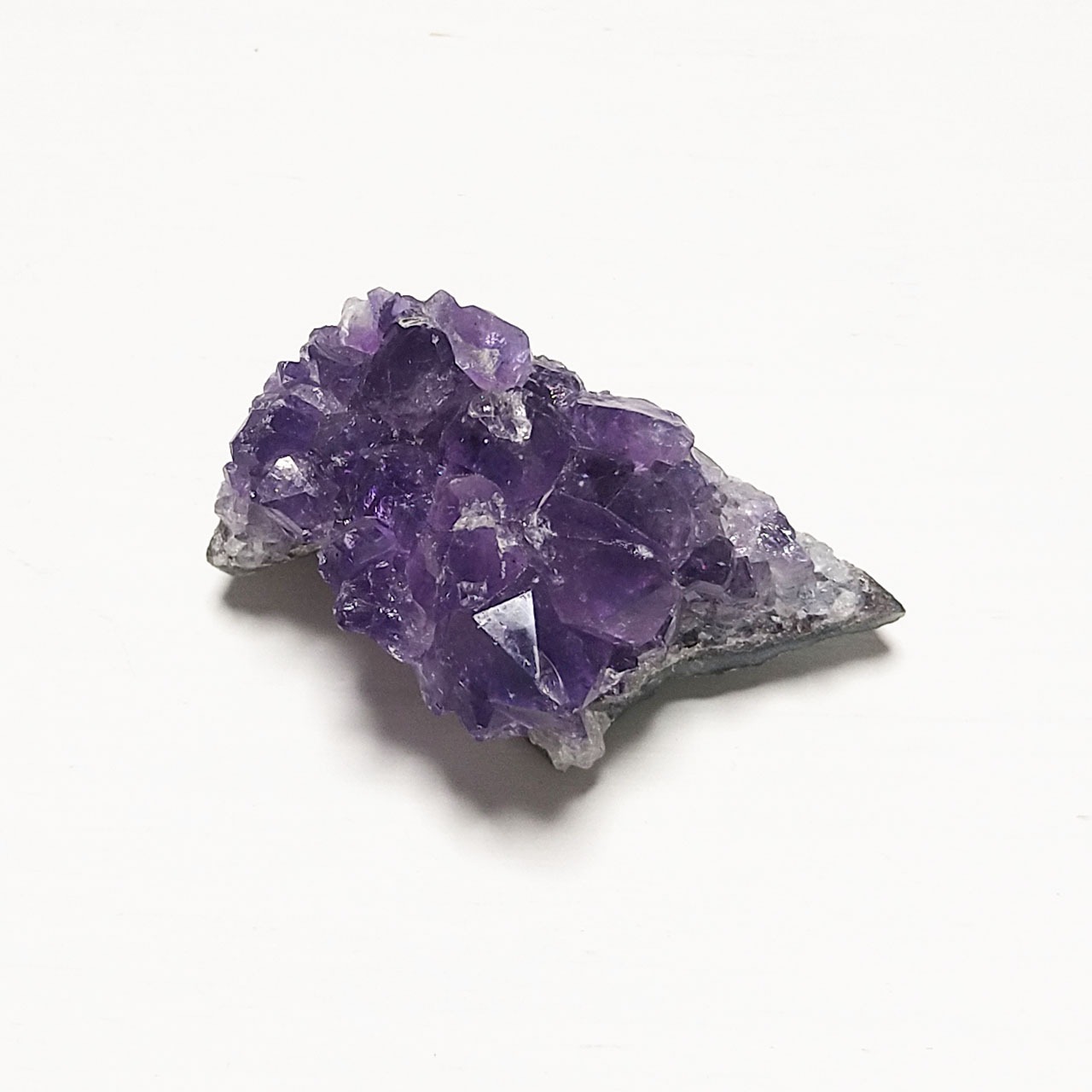 こぶりですが、小さい中にしっかりとした結晶がきゅっとつまったアメジストの原石。