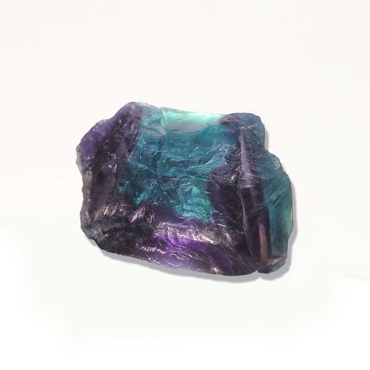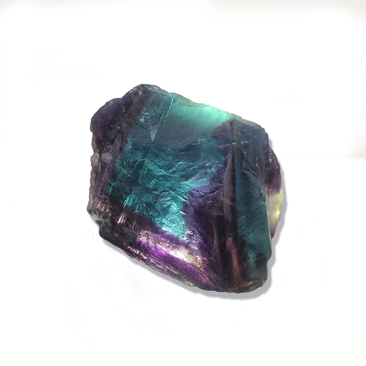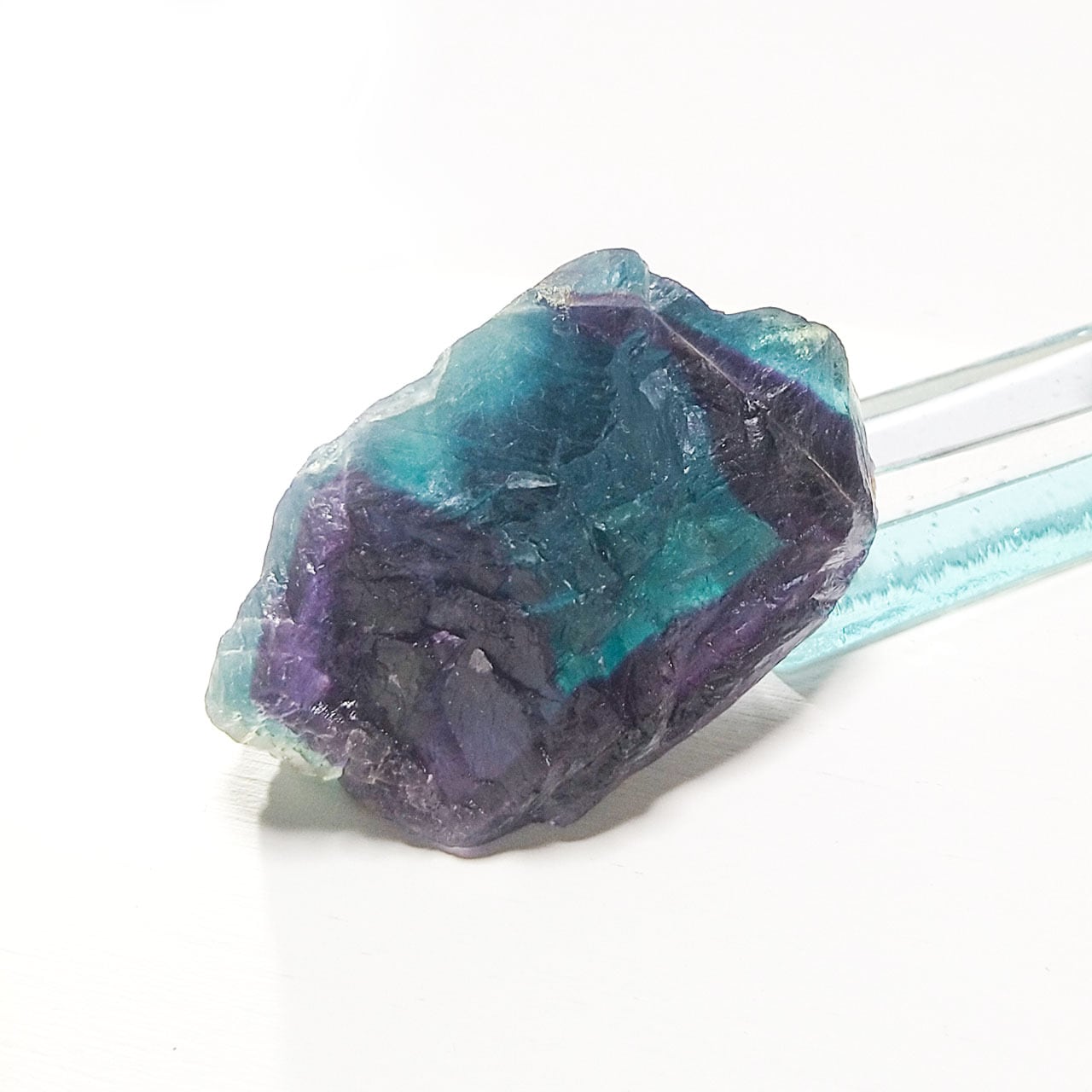 幻想的で美しい紫と吸い込まれそうな海の様なブルーグリーンの中に淡い黄緑がのぞく蛍石。