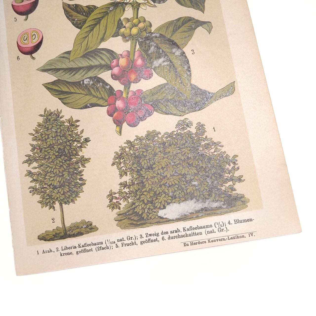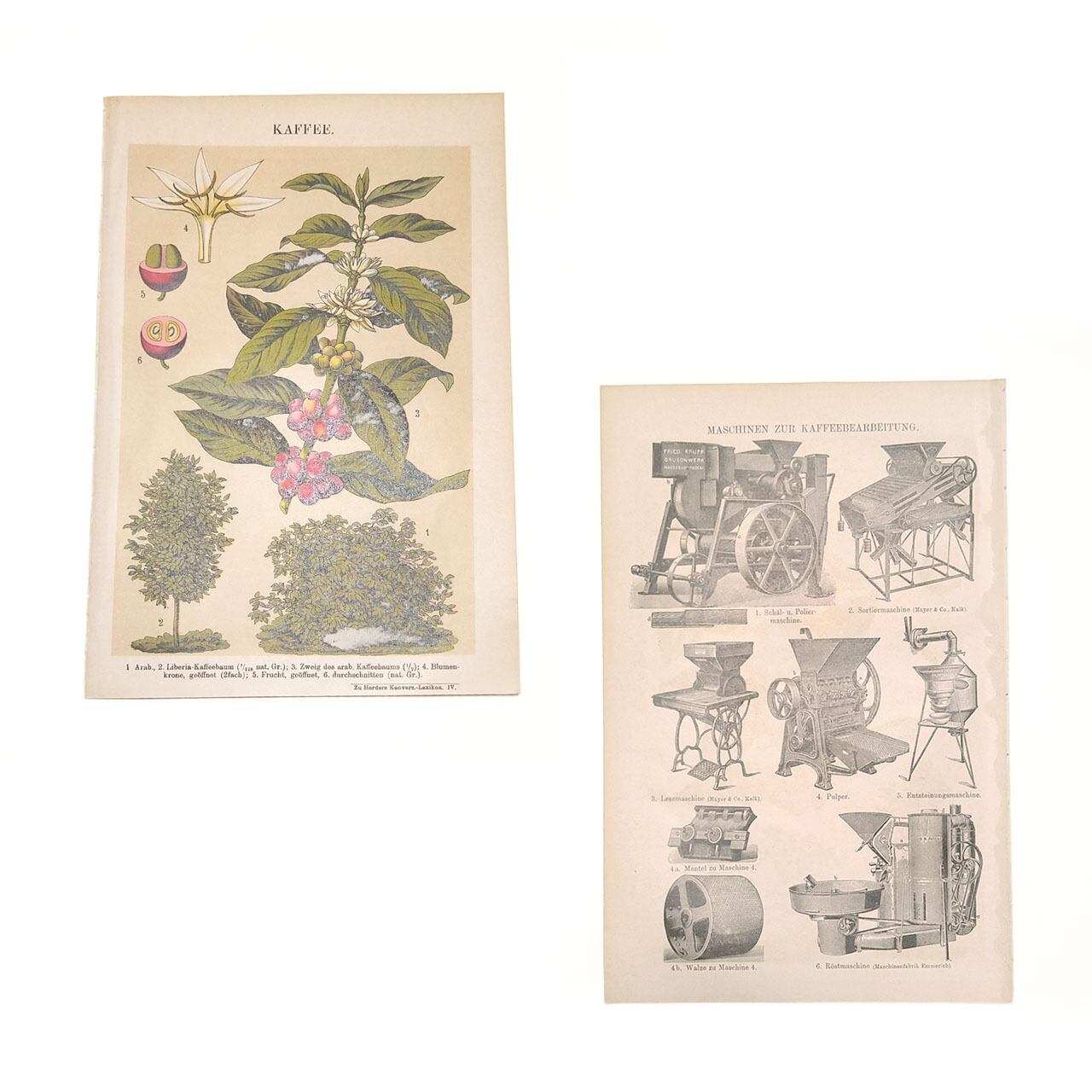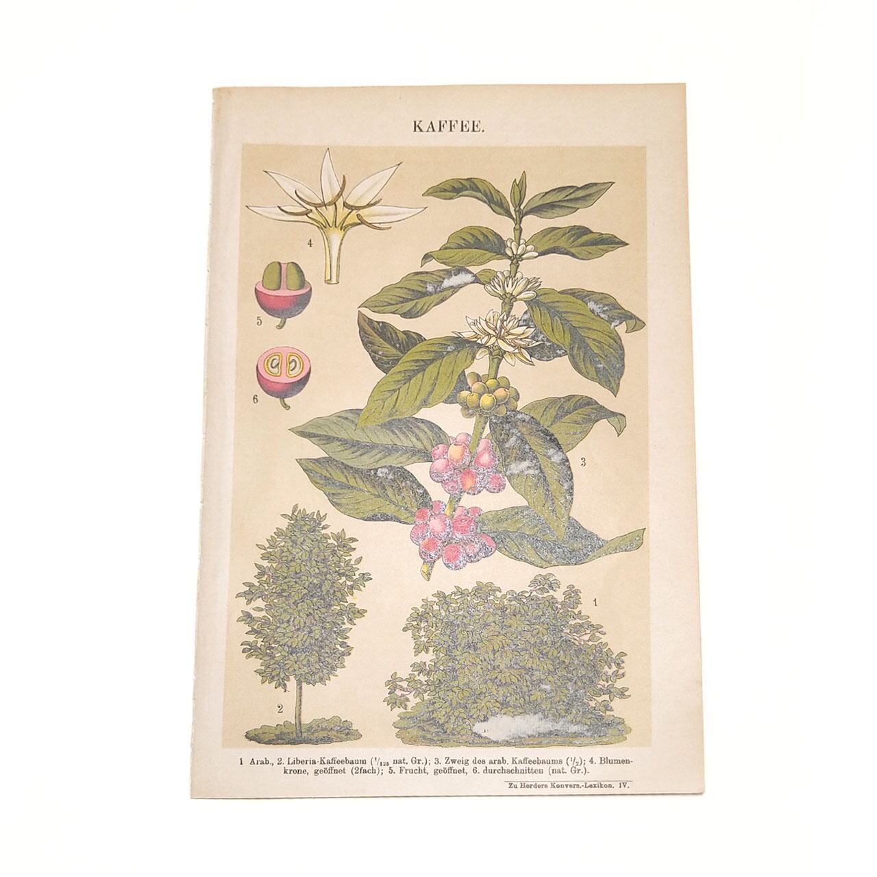 訳アリアウトレット コーヒー&コーヒー加工機のイラスト リトグラフ 植物 図版 ヘルダー大百科事典 ヴィンテージペーパー 1956-24