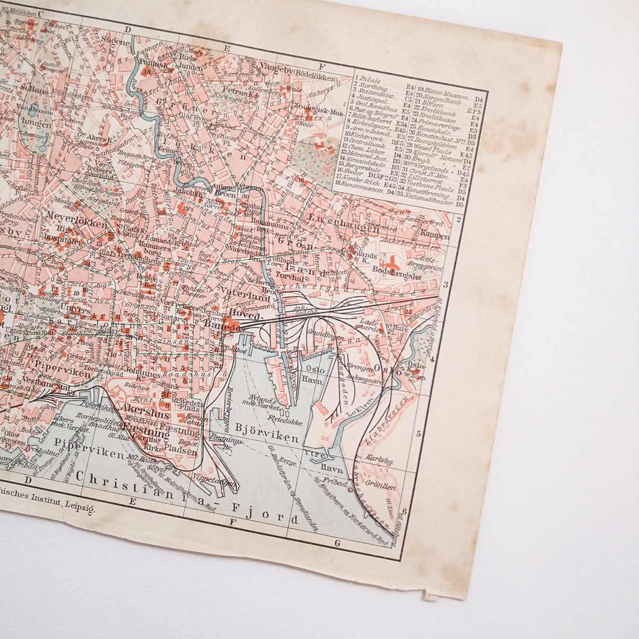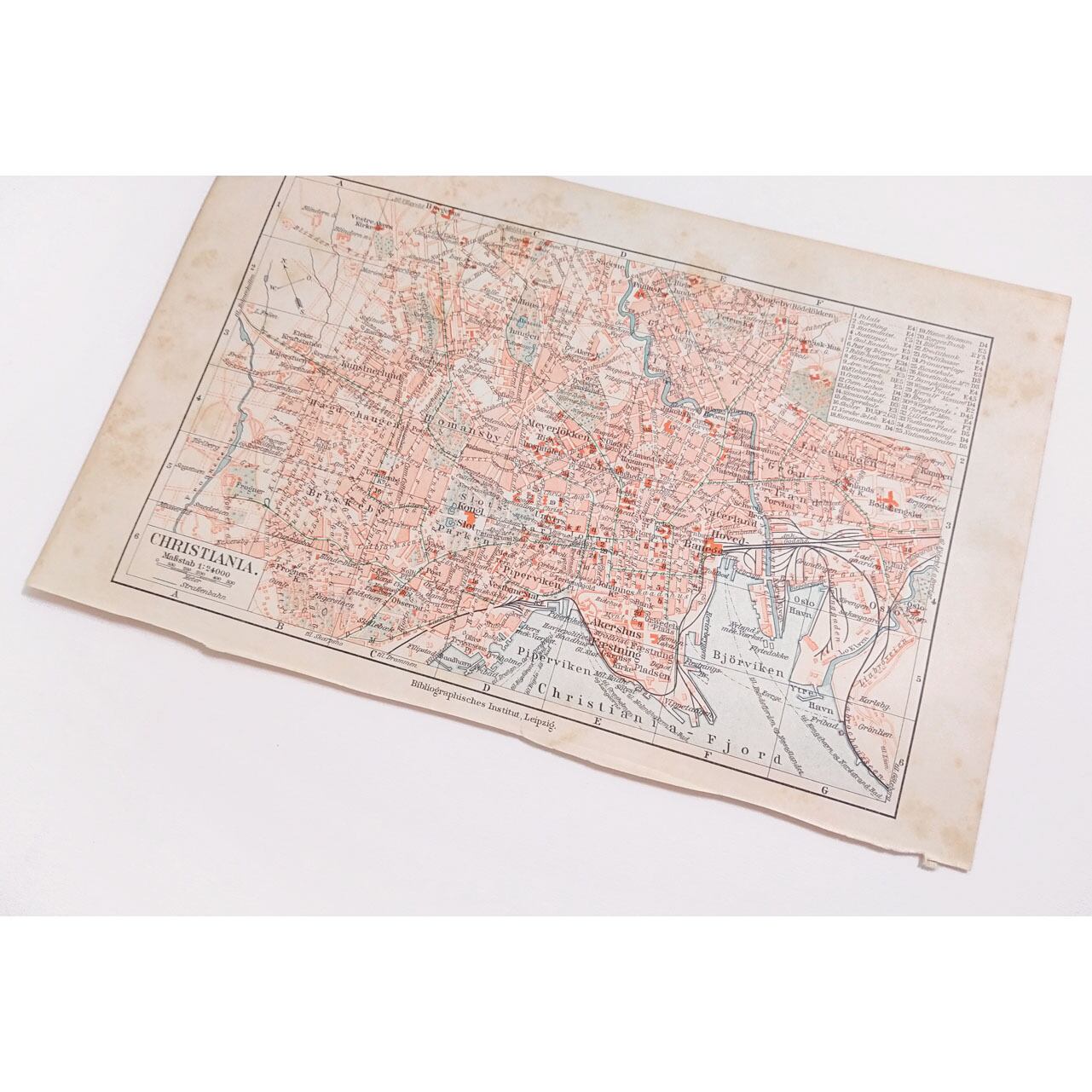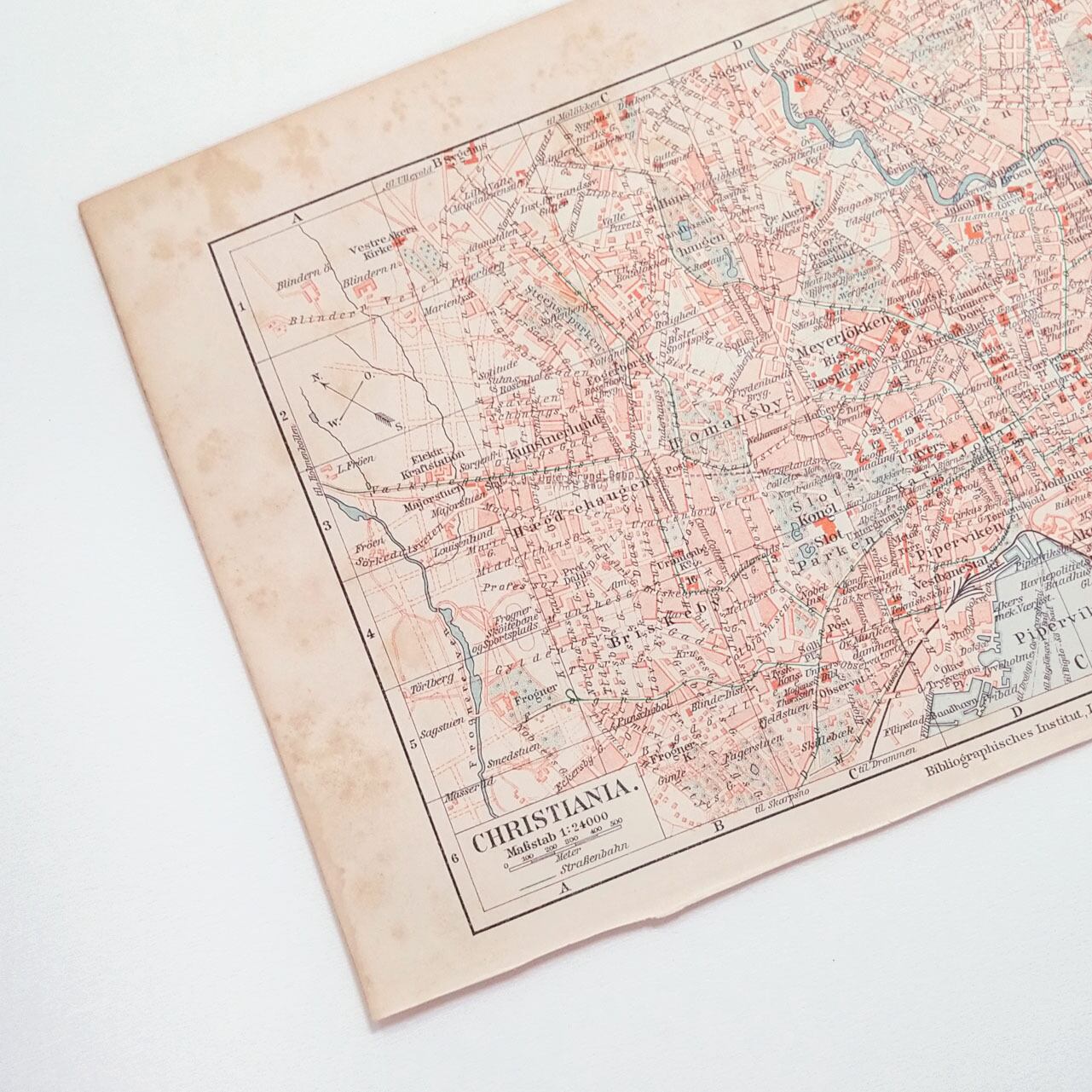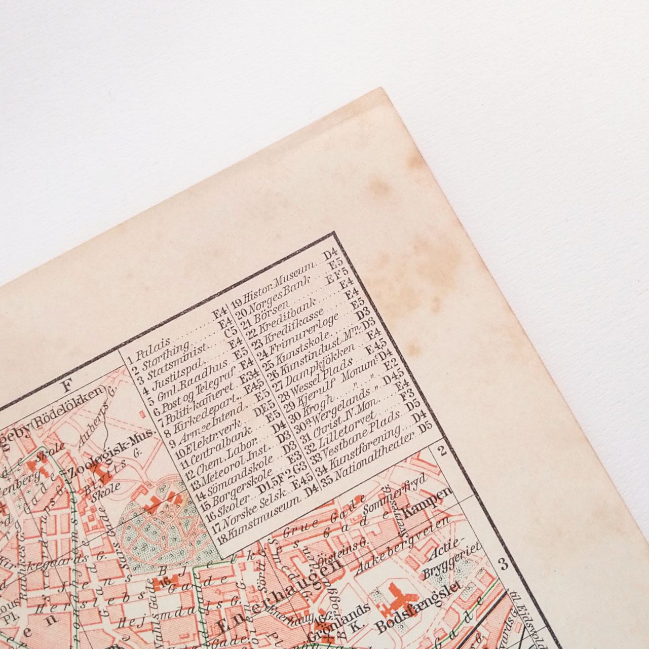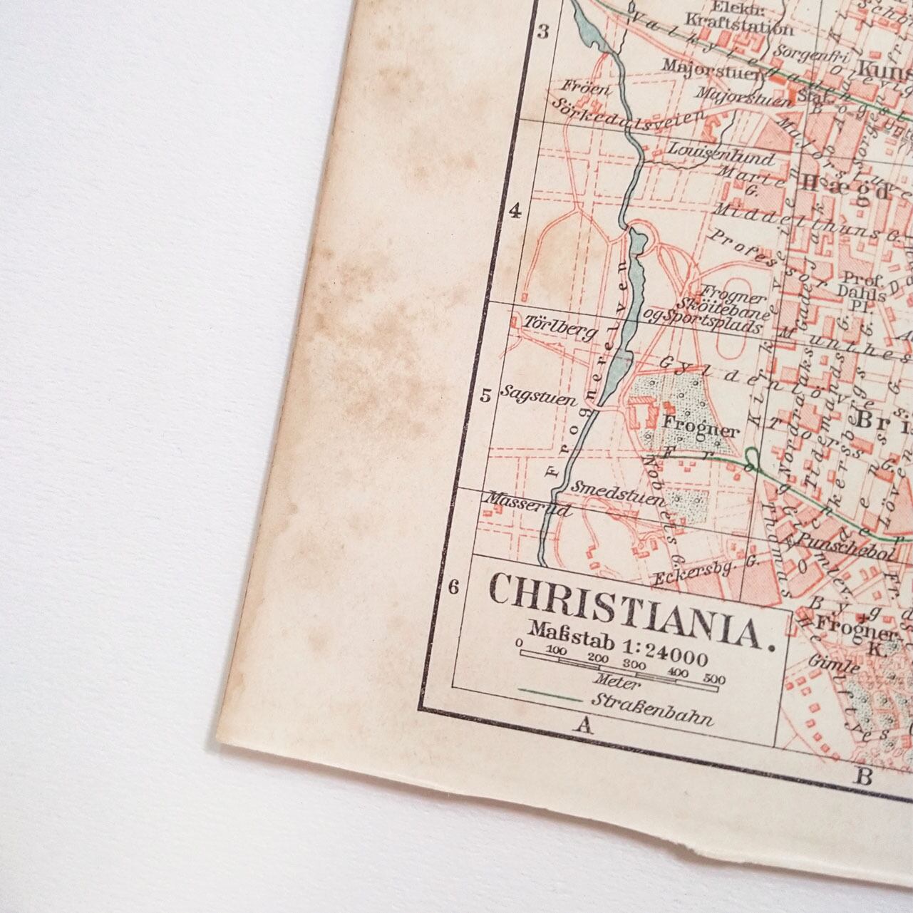 ノルウェー首都オスロ 1924年以前の旧称 クリスチャニアの地図 アンティークマップ 古地図 ヴィンテージペーパー マイヤー百科事典 01957-3