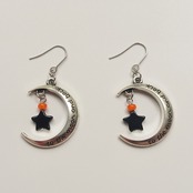 銀色の三日月チャームとオニキスの黒い星でハロウィンの夜をイメージしたピアスです。