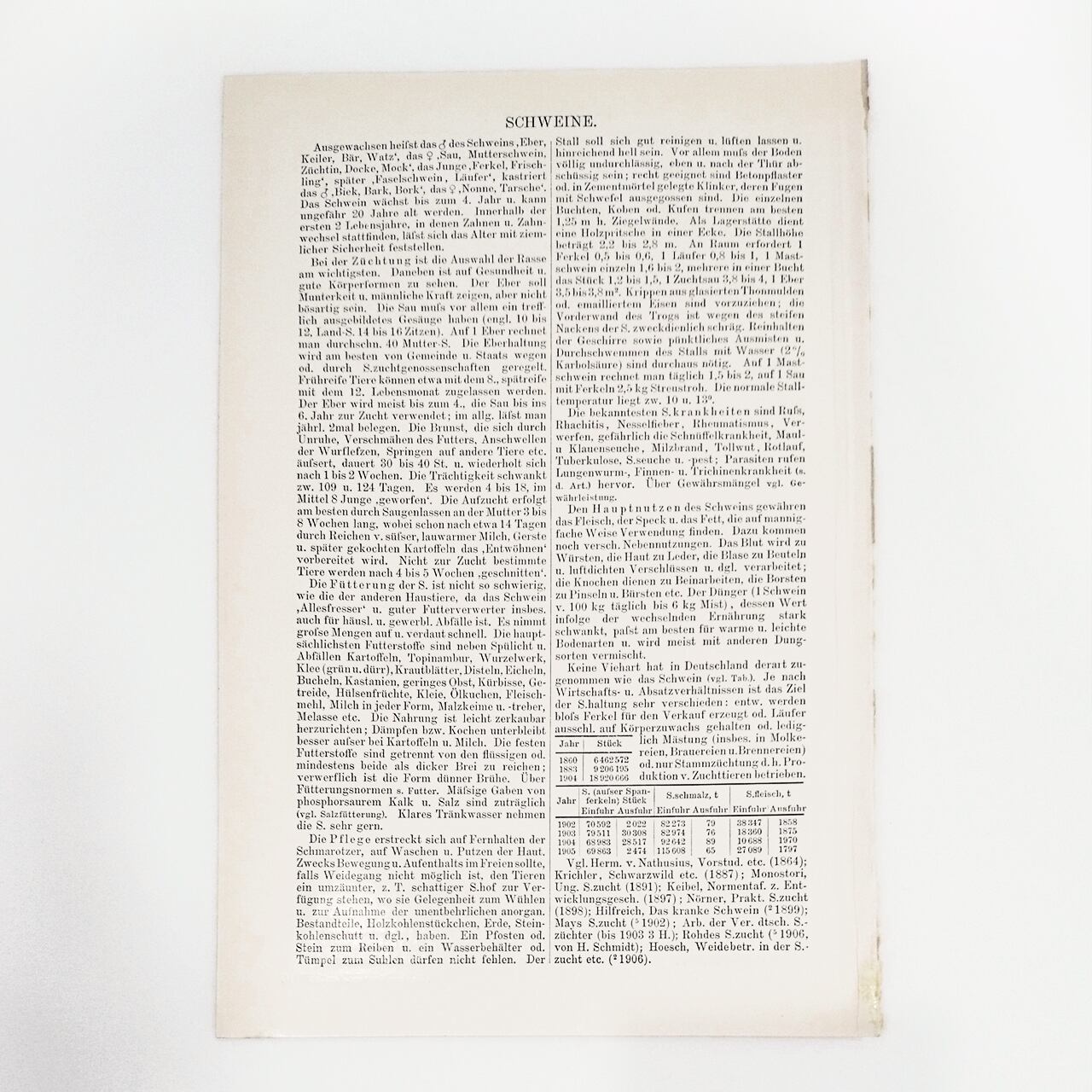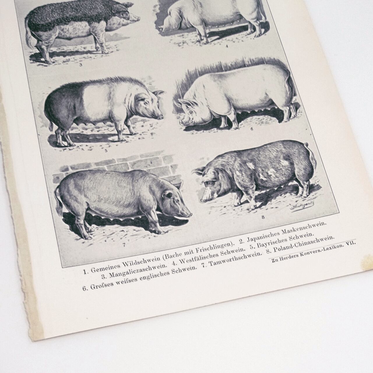 豚 モノクロイラスト 博物学 動物図版 ヘルダー大百科事典 裏側説明文 01956-16