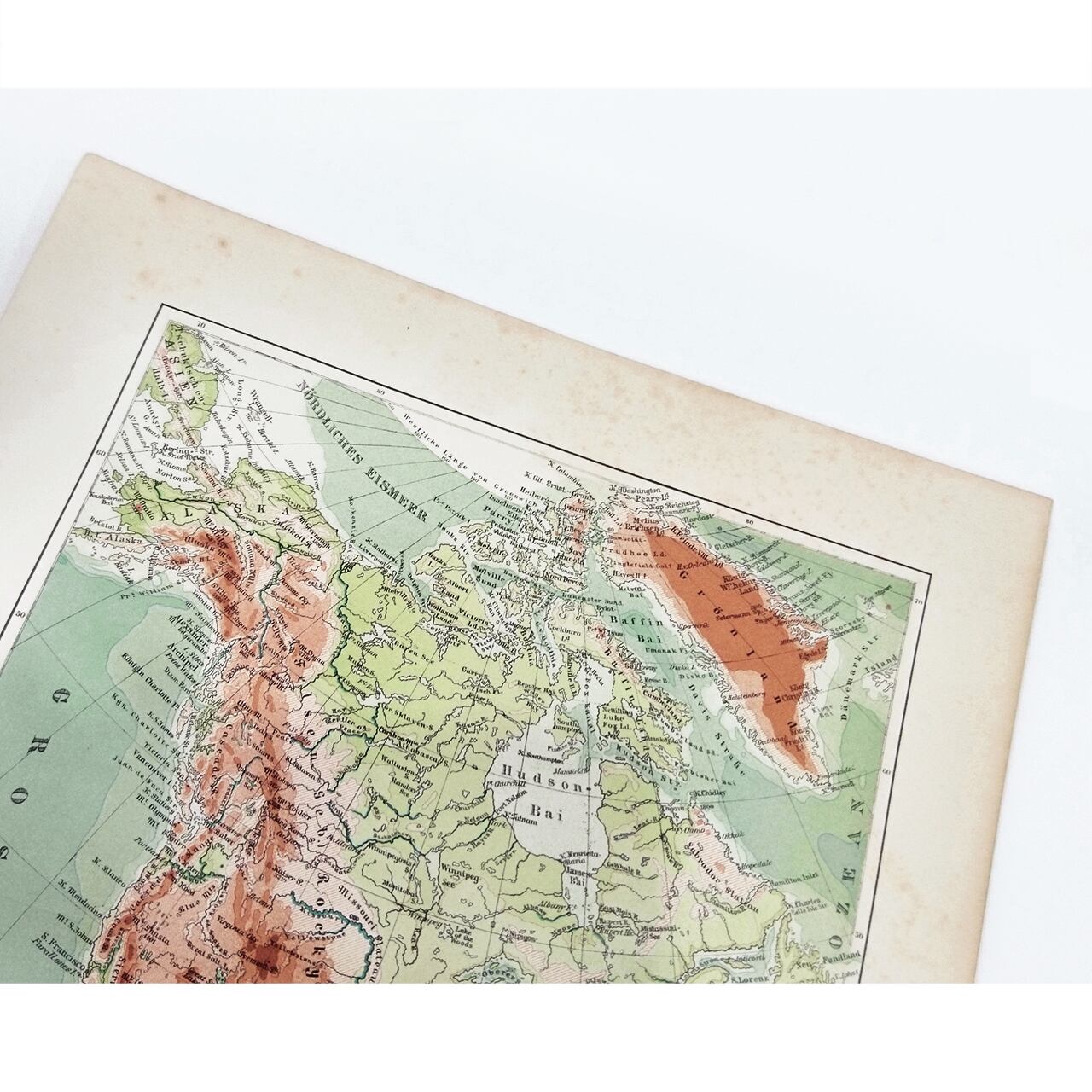 北アメリカ 山と川の体系図 マイヤー百科事典 アンティークマップ 古地図 ビンテージ 01957-76
