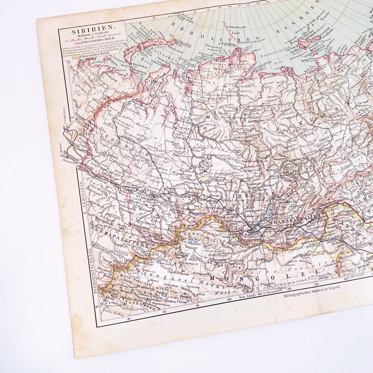 シベリア アンティークマップ 古地図 マイヤー百科事典 ビンテージ 地図 図版 1957-87