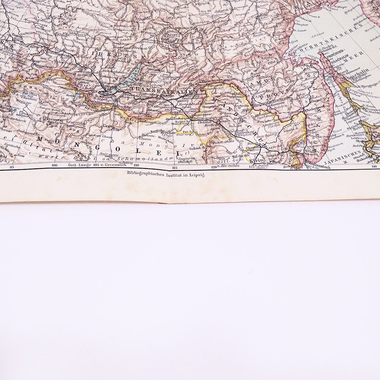 マイヤー百科事典からの当時のシベリアの見開き1ページの地図図版です。