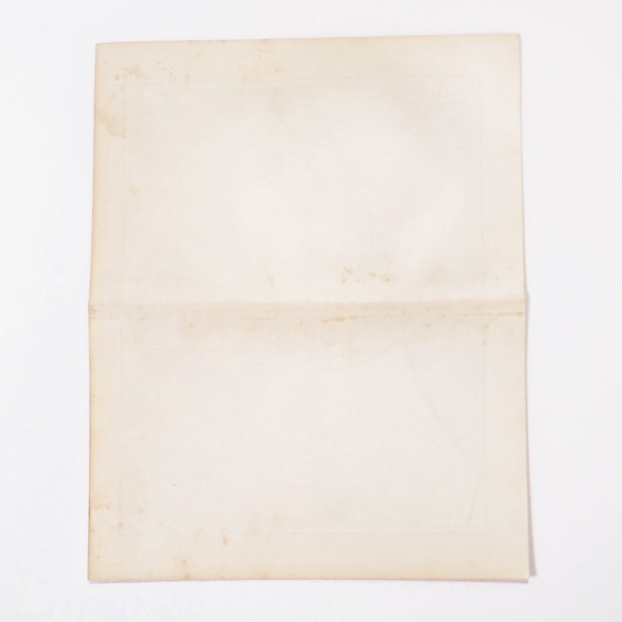 全体的に黄ばみ変色、枠から地図にかけてシミ汚れ、左下方にめくり跡があります。