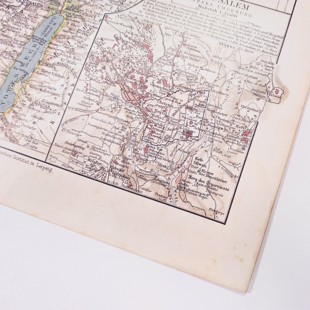 パレスチナ アンティークマップ 古地図 ヴィンテージペーパー 図版 マイヤー百科事典 1957-117