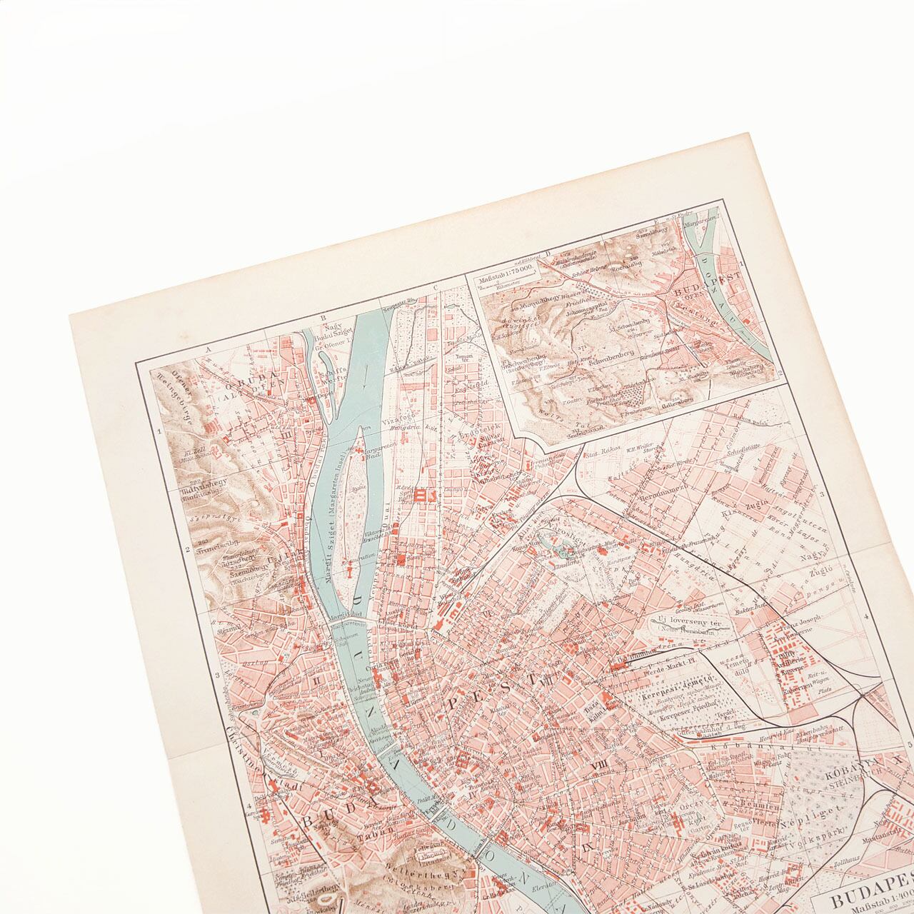 ハンガリー ブダペスト アンティークマップ 古地図 ヴィンテージペーパー 図版 マイヤー百科事典 1957-22